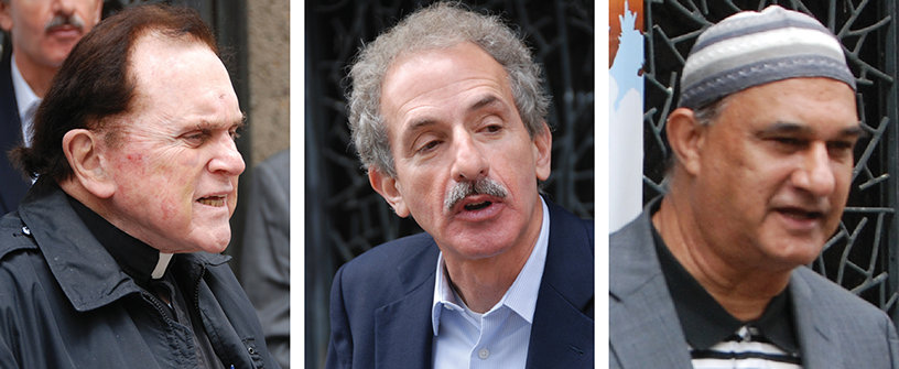 Speakers at the outset of the march included (left to right) Msgr. Frank Hicks of St. Basil Roman Catholic Church, former Los Angeles City Attorney Mike Feuer and Mr. Mohammed Kahn of American Muslims for Sustainability.