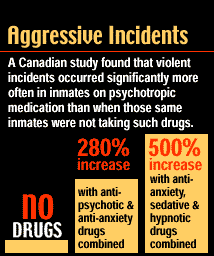 Aggressive Incidents A Canadian study found that violent incidents occurred significantly more often in inmates on psychotropic medication than when those same inmates were not taking such drugs. |