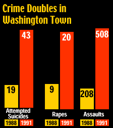 Crime Doubles in Washington Town Research found that between 1988 and 1991, attempted suicides, rapes and assaults more than doubled in Wenatchee, Washington, where a doctor single-handedly raised the average serotonin level in the small town with one drug. |